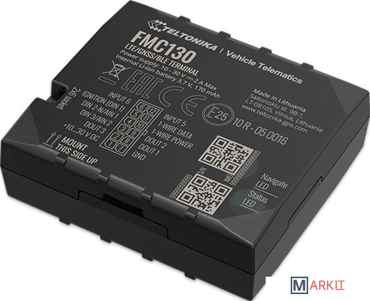 FMC130 - это небольшое устройство серии продвинутых трекеров с сетевым покрытием 4G (LTE Cat 1), с возможностью резервного использования 3G (UMTS) и 2G (GSM) сетей. Устройство оснащено встроенными антеннами GNSS и LTE, настраиваемыми цифровыми/цифровыми/аналоговыми/отрицательными и импульсными входами, тремя цифровыми выходами, Bluetooth модулем и резервным аккумулятором. FMC130 разработан на существующей платформе Teltonika FMB, поэтому он сохраняет все функциональные возможности FMB130 и опирается на них с использованием передовых технологий. Для начала, FMC130 имеет отрицательный вход, что позволяет сэкономить драгоценное время интеграции при подключении аксессуаров, таких как датчик дверей автомобиля, кнопка аварийной сигнализации, обнаружение ремней безопасности и других подобных датчиков или аксессуаров. Кроме того, в устройство встроена возможность подключения импульсного входа для точного считывания данных расходомера топлива. Импульсный мониторинг расхода топлива гораздо точнее, чем датчики расхода топлива другого типа, что делает FMC130 идеальным решением для машин с высоким расходом топлива, таких как краны, строительная техника, карьерные машины, сельхозтехника. Программируемые входы, 3 различных настраиваемых сценария цифровых выходов (иммобилайзер, зуммер, сигнальные лампы, дверной замок и другие сценарии) вместе с 4G (LTE Cat 1) совместимостью, в том числе резервной совместимостью с 3G (UMTS) и 2G (GSM), делают это устройство одним из самых гибких в мире.