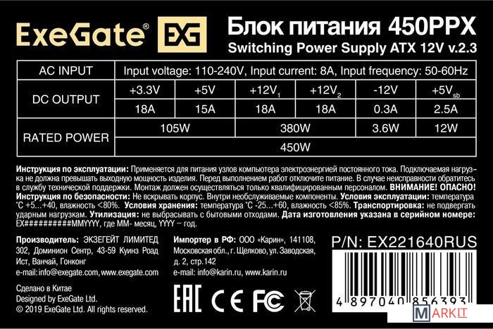 Markit » Блоки питания » Блок питания ExeGate 450PPX EX221640RUS