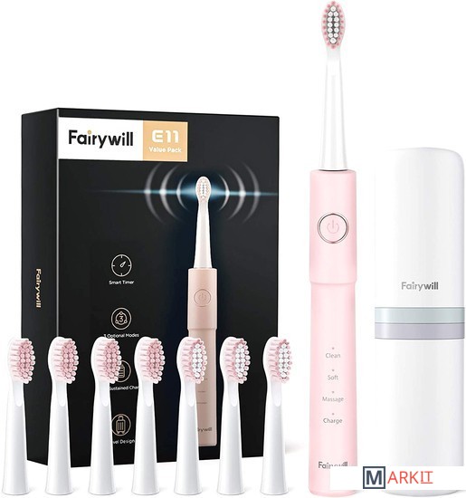 Markit » Электрические зубные щетки и ирригаторы » Электрическая зубная щетка Fairywill E11 (розовый, 8 насадок)