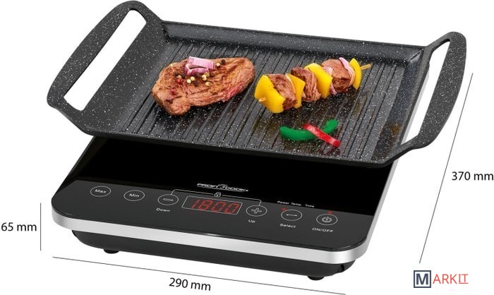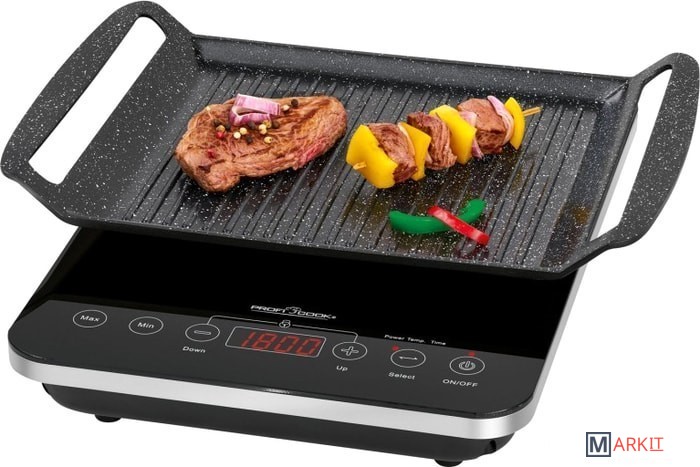 2 в 1 - индукционный настольный гриль и индукционная плитаНагрев занимает всего несколько секунд благодаря индукционной технологииТехнология ECO-Save - экономия времени на 55% по сравнению с обычными варочными панелями, отсутствие фазы предварительного нагрева, экономия энергии10 уровней мощности и 10 уровней температуры со светодиодным индикатором (60 ° C-240 ° C)Электронная сенсорная панель управления с дисплеем для удобной работы3 светодиодных индикатора180 мин. таймер с автоматическим отключением и сигналом окончанияОбратный отсчет на светодиодном дисплееАвтоматическое отключение через 120 мин. без операцииАвтоматическое отключение при удалении кастрюли / тарелкиБлокировка от детейВысокая устойчивость благодаря нескользящим ножкамУстойчивая к царапинам алюминиевая пластина для гриля с керамическим покрытием и глубокими канавками для прочного гриля и оптимального отвода жира - оптимально удерживает и распределяет тепло (простая очистка)Материал: Алюминий со стальными вставками. Подходит для конфорки диаметром 200 мм. Подходит для индукционных плит.