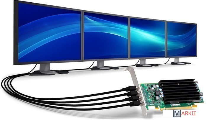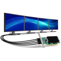 Профессиональная видеокарта для вывода изображения на 4 монитора или проектора с разрешением 2560x1600 на каждый выход. Видеокарты имеет пассивное охлаждение, поэтому совершенно бесшумна в работе. Низкое энергопотребление и низкопрофильный дизайн способствуют установке карты в компактные или встраиваемые системы