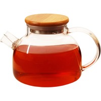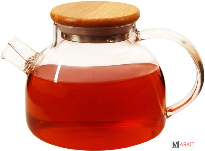 Большой удобный чайник с металлической фильтр-пружинкой в носике. В нем не предусмотрена колба для заваривания чая. Крышка надёжно удерживается за счет силиконовой вставки. У чайника интересный внешний вид за счет его формы-бочонка и плоской деревянной крышечки.